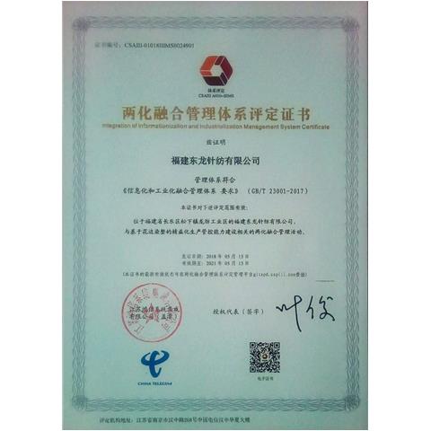 工信部兩化融合管理體系評(píng)定證書