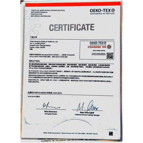 瑞士OEKO-TEX STANDARD 100生態(tài)紡織品認(rèn)證證書